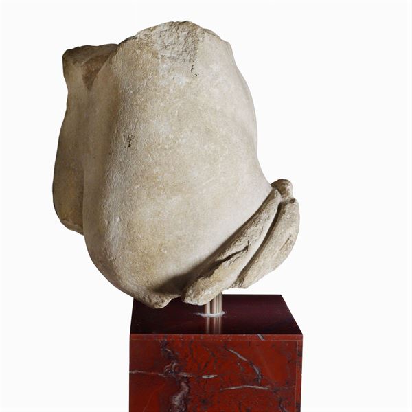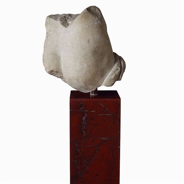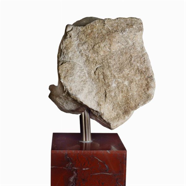 resting on a squared red marble stand of 110x23x23 cm., 40x40x30 cm.