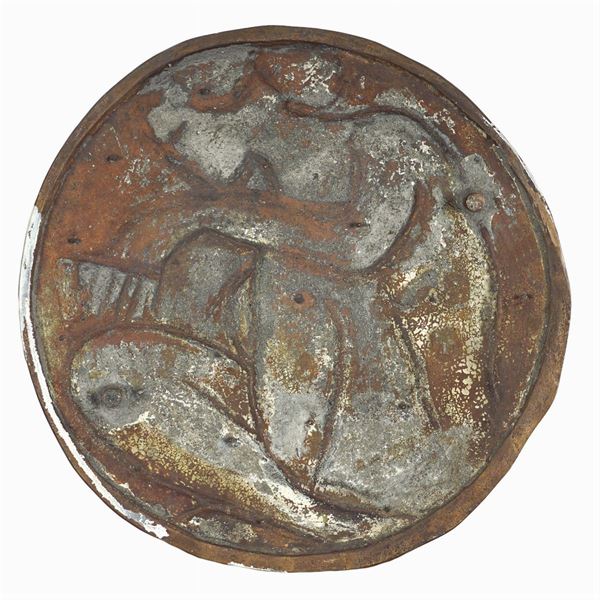 "Woman with book", circular bronze plaque, signed at the bottom right, d. 36 cm.
