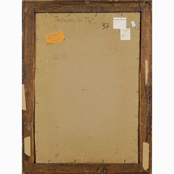 "Tea table", 1958, oil on cardboard, signature on the top left, title on the back, framed