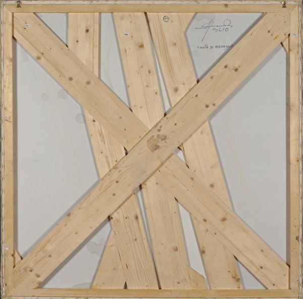 "Glio-nota di accordo", black canvas, signature and title on the back, authentic on photo released from the Giuseppe Amadio archive, 150x150 cm.