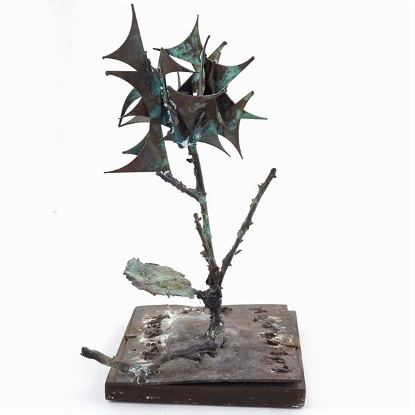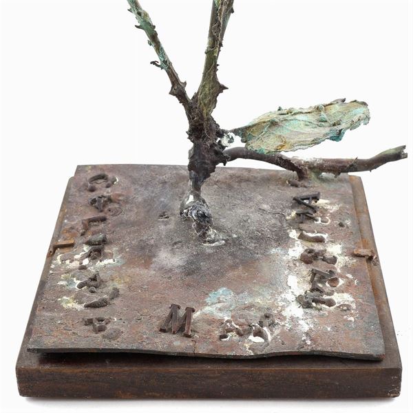 "Untitled", patinated bronze sculpture, bears on its base in relief "margherita Gallery", squared wood base, 37x18x18 cm.