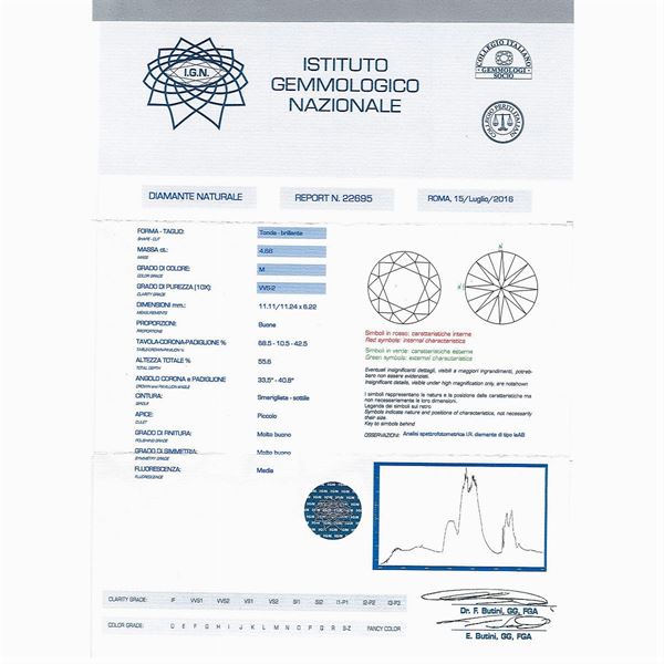 M color - VVS2 clarity, complete with I.G.N. gemological report n. 22695, peso