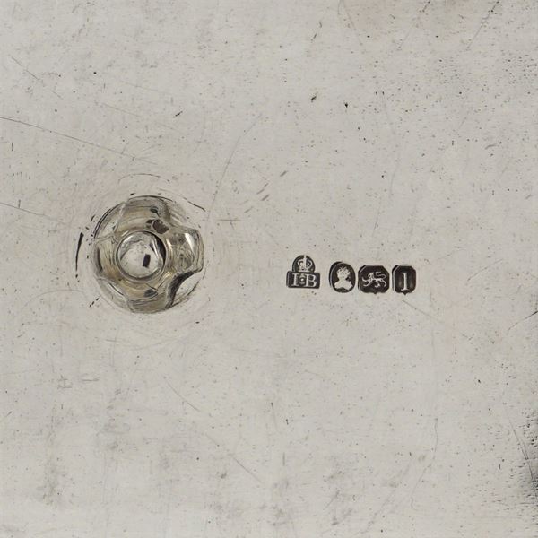 John Bridge goldsmith, silvered metal bodies resting on spheral feet, interior silver tray, curved silver lids, grips chiselled with vegetal scroll patterns, 24x40x23 cm.