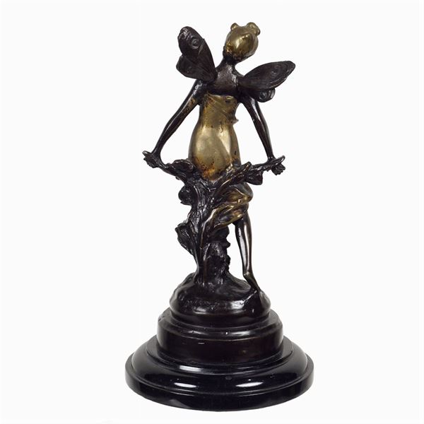 depicting "Allegory of Spring", resting on a black marble base, incrompehensible sign on the base, h. 22 cm.