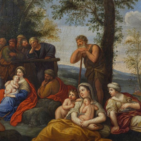 "The Preaching of Saint John the Baptist", oil on canvas, within gilt wood frame, 78x98 cm.