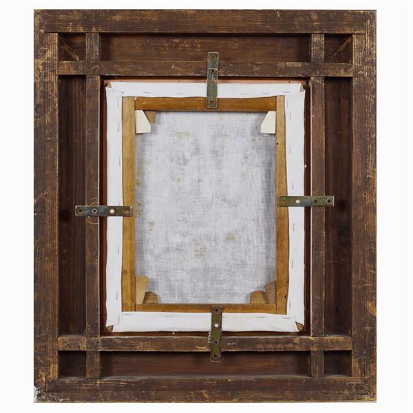 "Lady with cat", oil on canvas, within gilt wood frame, 35x28 cm.