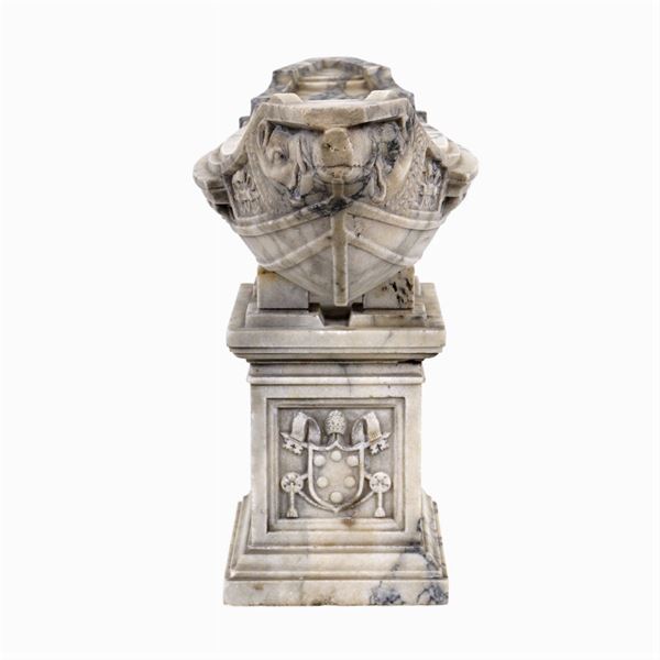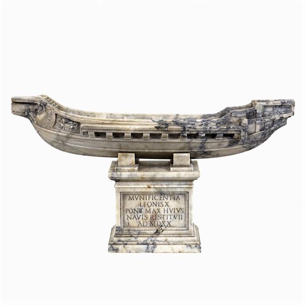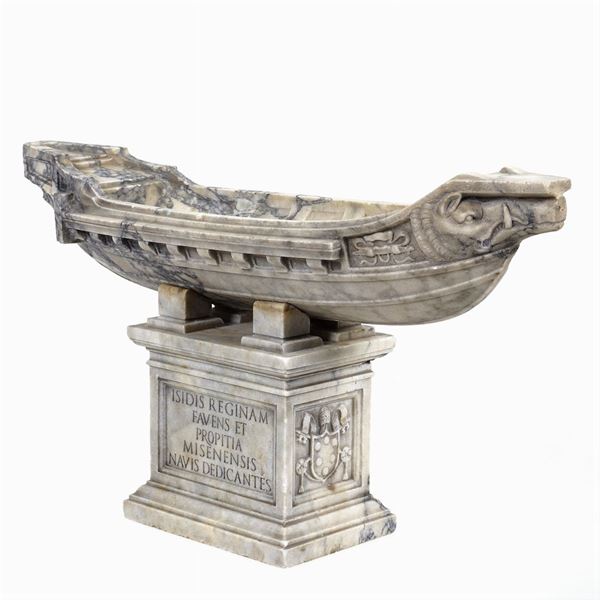 depicting "La fontana della Navicella" in Rome, wear and defects, 29,5x53x12 cm.