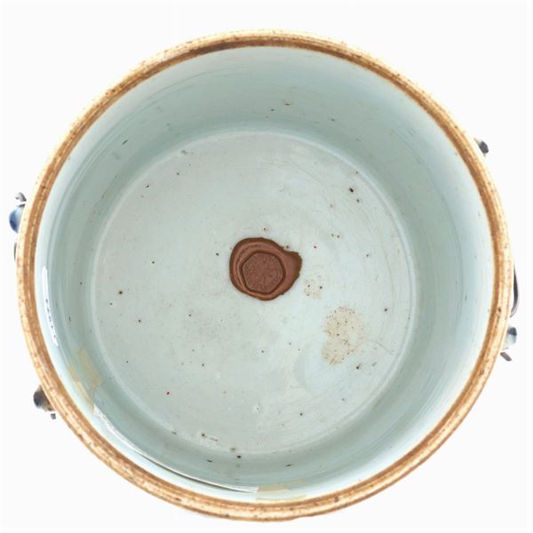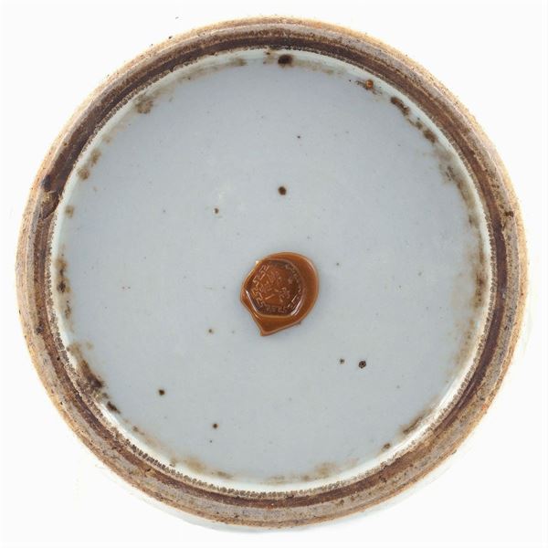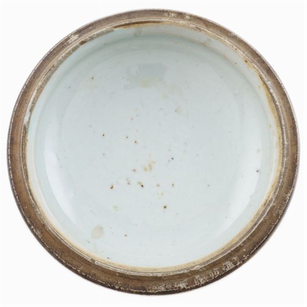 Circular shape, decorated  with floral patterns, wooden base, defects., 17x16 cm.