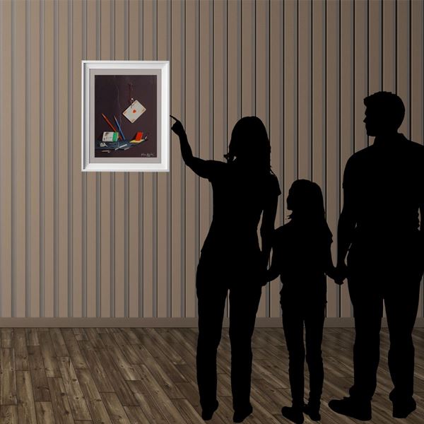 "Natura morta trompe-l'œil", 1971, oil on canvas, signed and dated at the bottom right, framed, 40x30 cm.