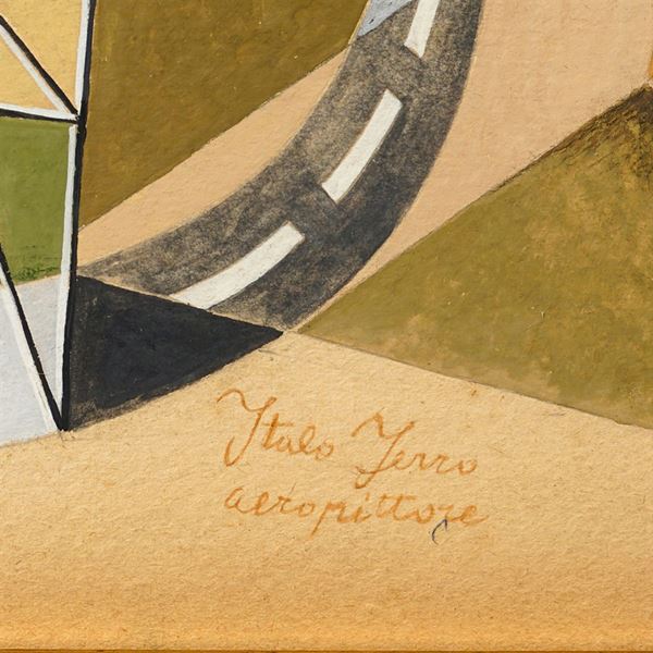 "Aeropittura futurista", mixed technique on paper, signed lower right, within frame, 48x34 cm.