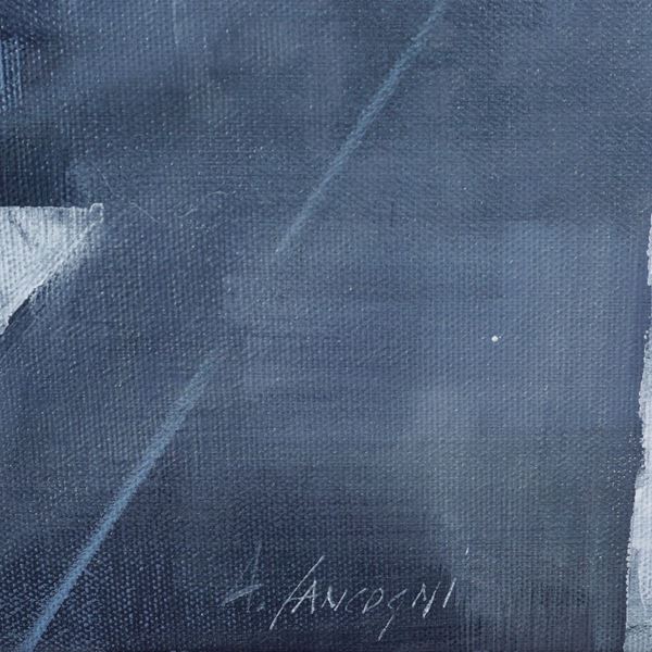 "Città", oil on canvas, signed lower center, titled and signed on the reverse, within frame. Artist's authentic on photograph, 50x50 cm.