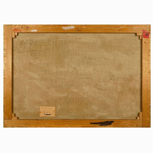 "Mattanza", oil on canvas, 1952, signed lower right, signature, date and title on the reverse, tag "Gallery il portico - Santa Margherita Ligure". Work registered in the Aligi Sassu, Casate Brianza, under the n. S.G. 51/LA 183, as authentic on photograph dated 16 march 2000.