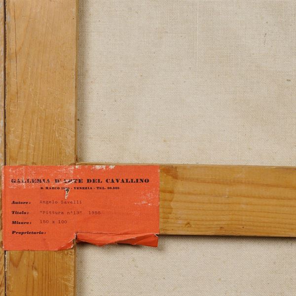 Label on the reverse of the l'Elefante Arte Contemporanea Gallery, Treviso, label and stamp of the Galleria del Cavallino, Venezia.