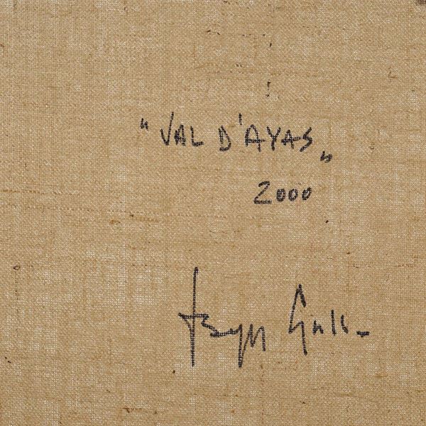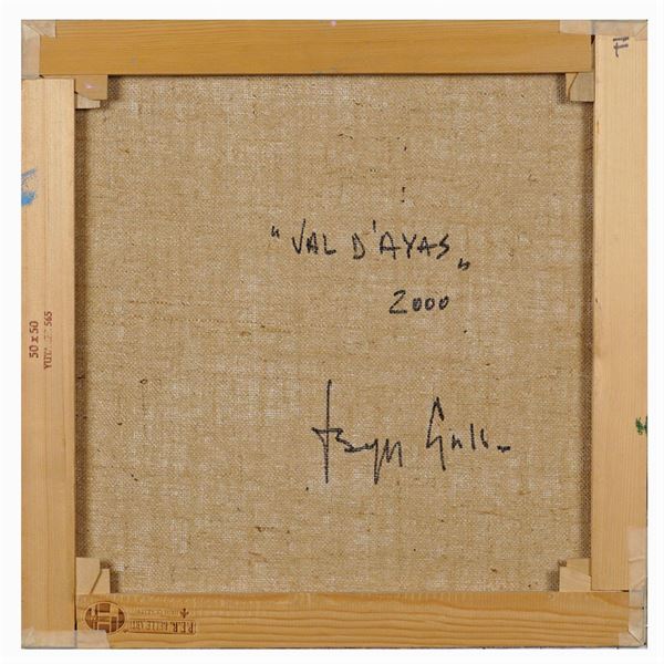 "Val D'Ayas", 2000, oil on canvas, titled, dated and signed on the reverse, within frame, 50x50 cm.