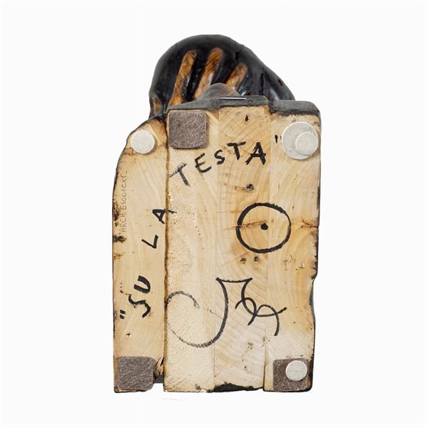 "Su la testa", 2005, wood sculpture, signed and titled under the base.