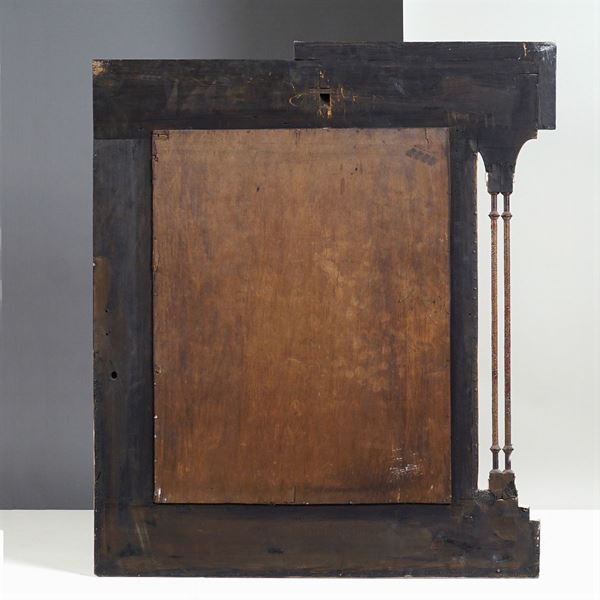 ebonized wood, metal, bone and parchment structure, 101x87 cm.