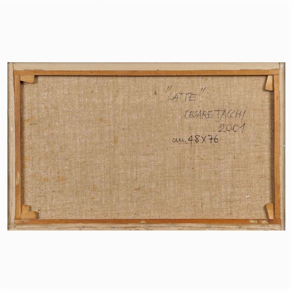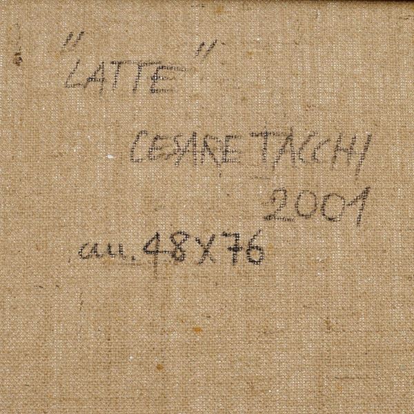 "Latte", 2001, oil on canvas, signed and dated on the reverse, within frame, 48x76 cm.