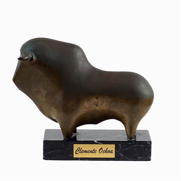 bronze sculptire depicting a bull, resting on a marble base, 18x22 cm.