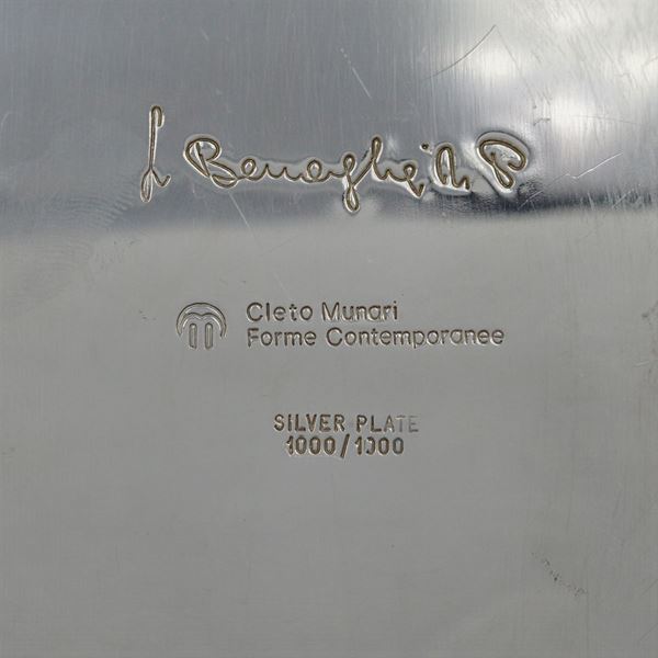 silver plate writing desk set (2) serie "Forme Contemporanee - L. Benaglia", composed by a pen holder and on noted holder, h. 11,5 cm. - 4x15x9 cm.