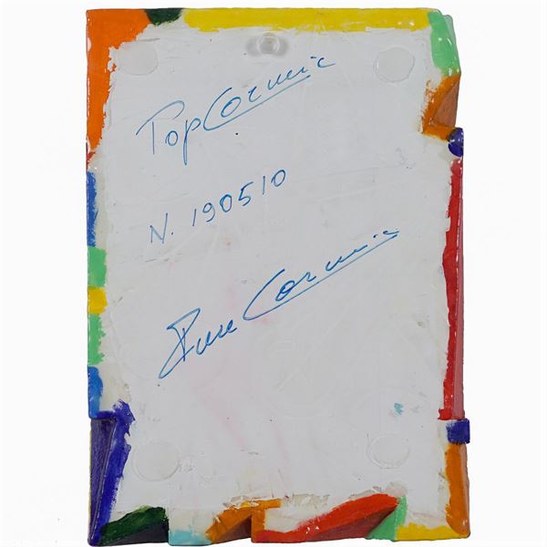 "Colors Sketch", 2019, acrylic and rsin on sculpted styrene, titled and signed on the reverse, work registered in the artist's archivio under the numer 190510 as from certificate on photograph, 21x30x4 cm.