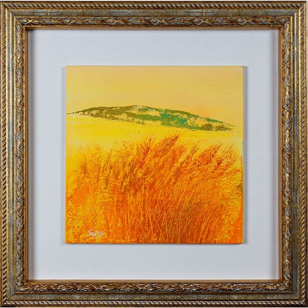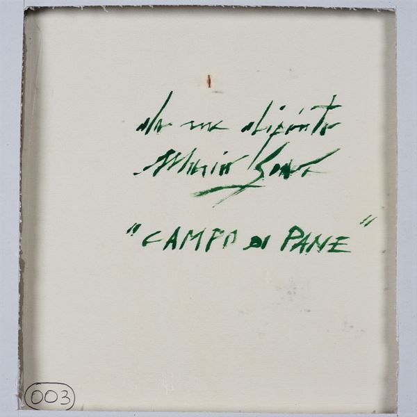 "Campo di pane", oli on panel, signed lower left, authentic on the reverse, within frame, 30x30 cm.