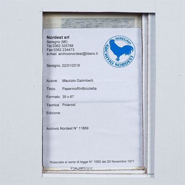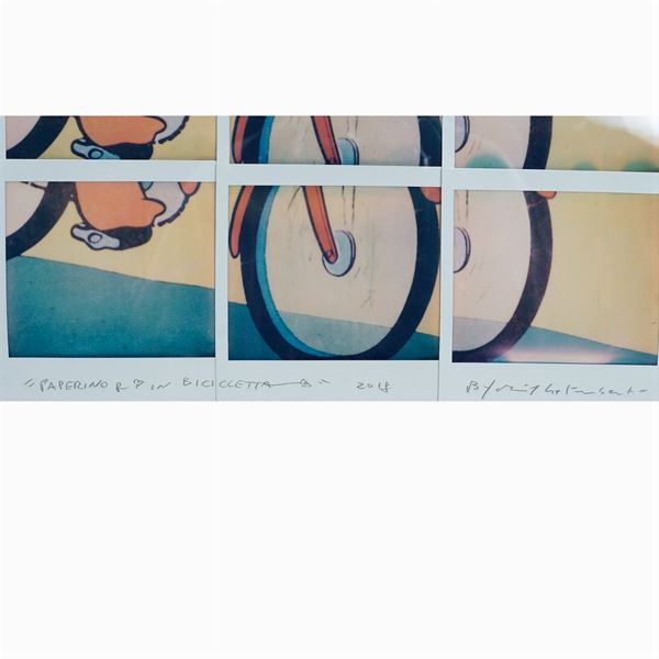 "Paperino In Bicicletta", photographies, signed, within frame. Work registered in the Archivio Nordest, Seregno, under the number 11869 as from certificate on photograph, 67x39 cm.
