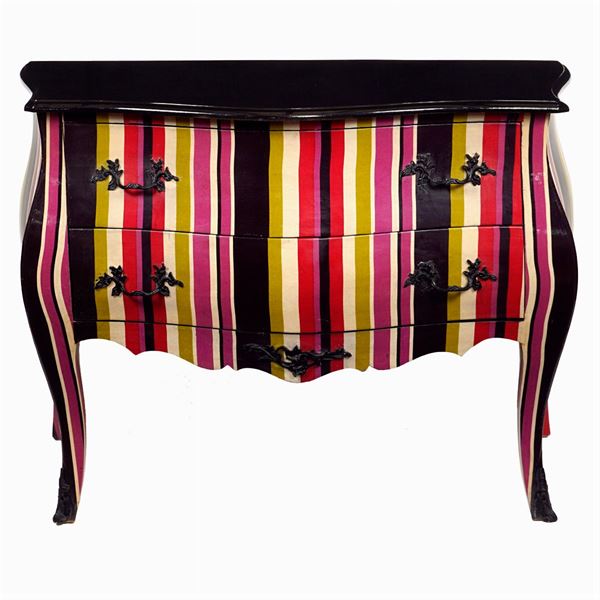 shaped structure, ebonized wood top, facade with two doors with burnished bronze handles, 85x114x54 cm.
