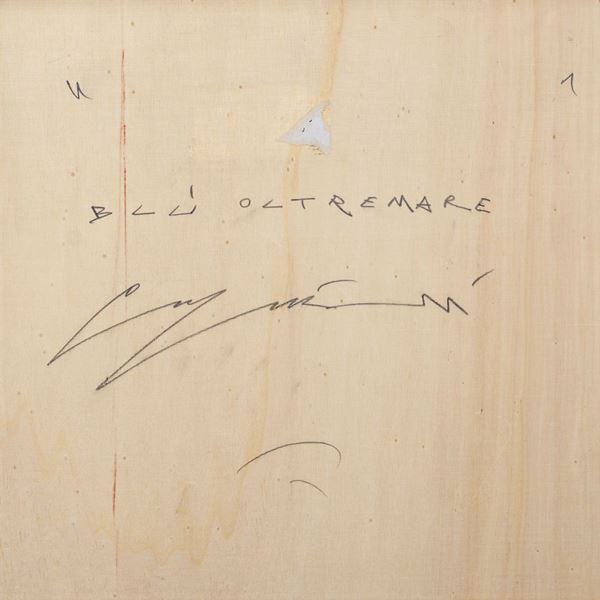 "Blu oltremare", 2017, mixed technique on panel, signed and titled on reverse. Artistit's authentic on photograph, 60x60 cm.