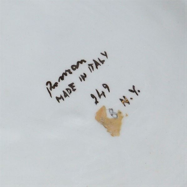 "Torero con toro", polychrome enamelled ceramic, marked "Ronzan made in Italy" under the base, 35x43x23 cm.