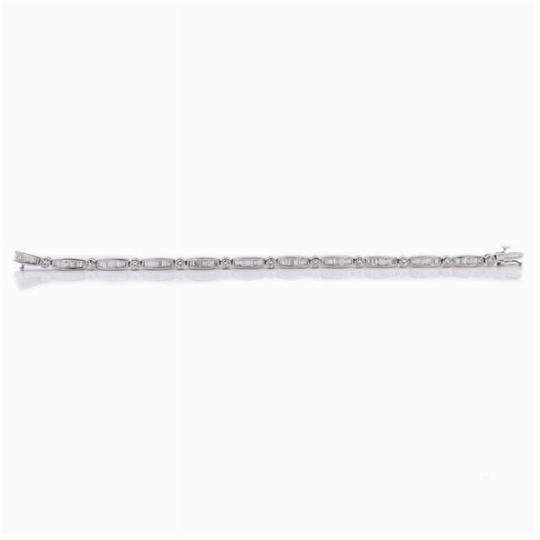 brilliant cut alternated with baguettes cut diamonds ct 4,20 ca, hidden closure, length 17 cm., peso 14,3 gr.