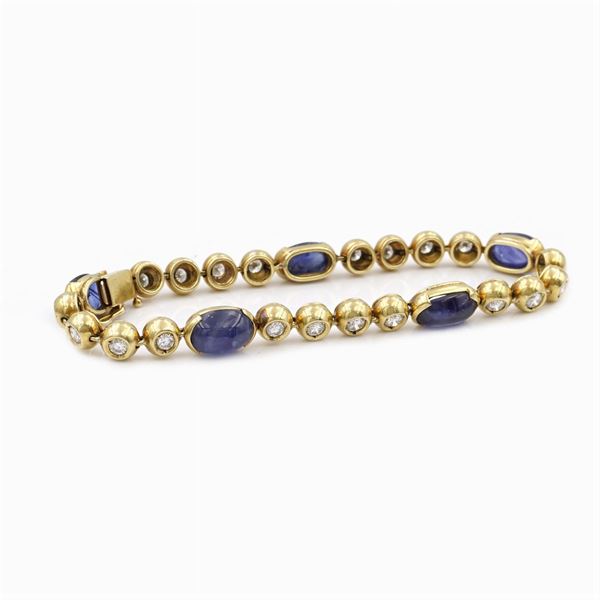 ct 1,50 ca., alternated by cabochon cut oval sapphires ct 8 ca., lenght 18 cm., peso 25,7 gr.