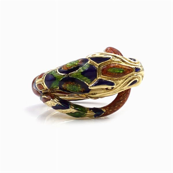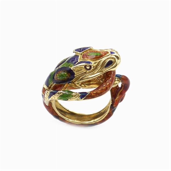 18kt gold and enamel snake ring