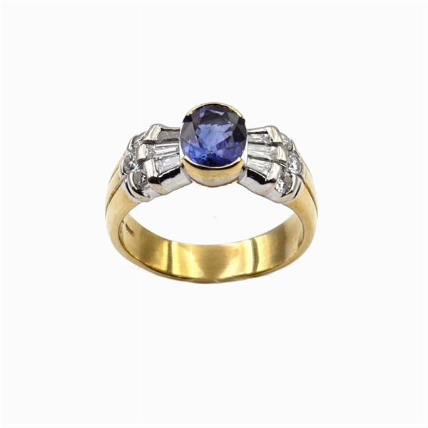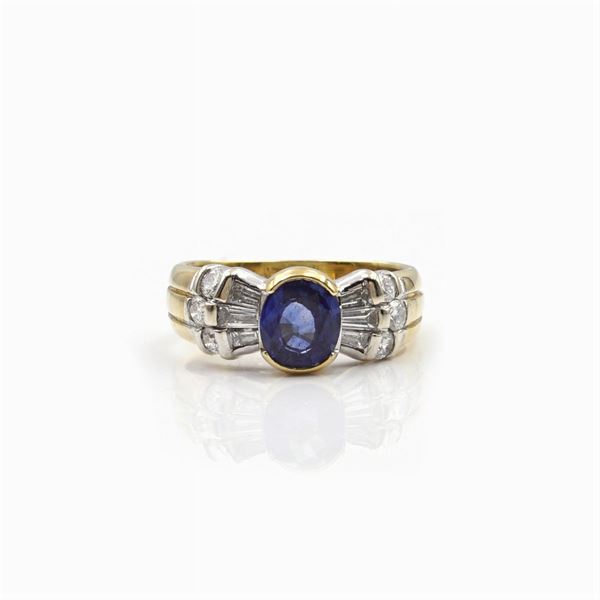 18kt gold and white gold ring with sapphire ct 1,80 ca
