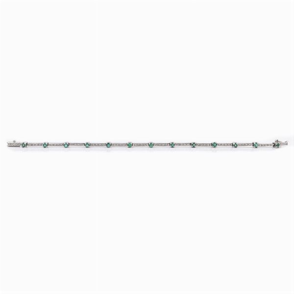 huit-huit cut ct 0,70 ca alternated with round emeralds, length 18 cm., peso 11,2 gr.