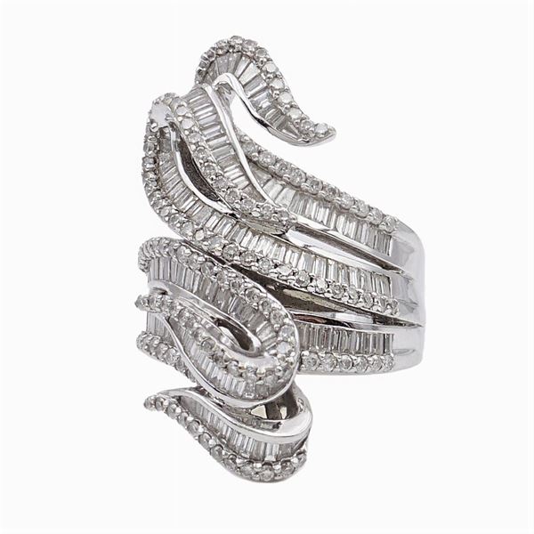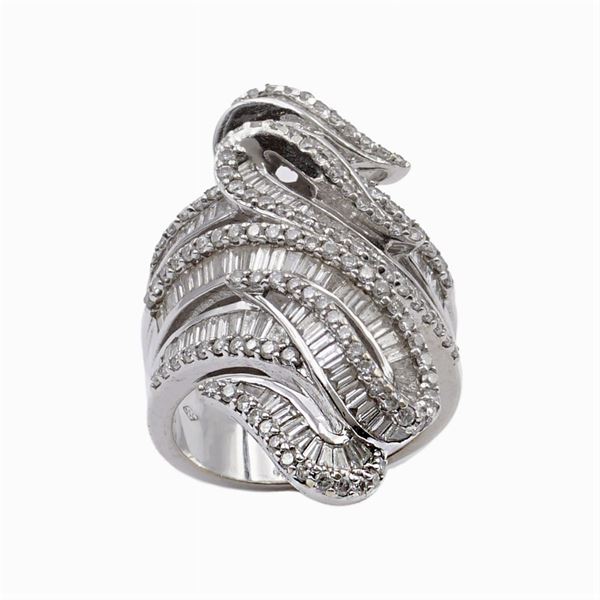 brillant and baguettes cut ct 1,90 ca, size 14,5, peso 16,8 gr.