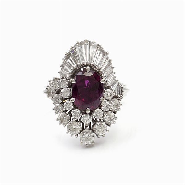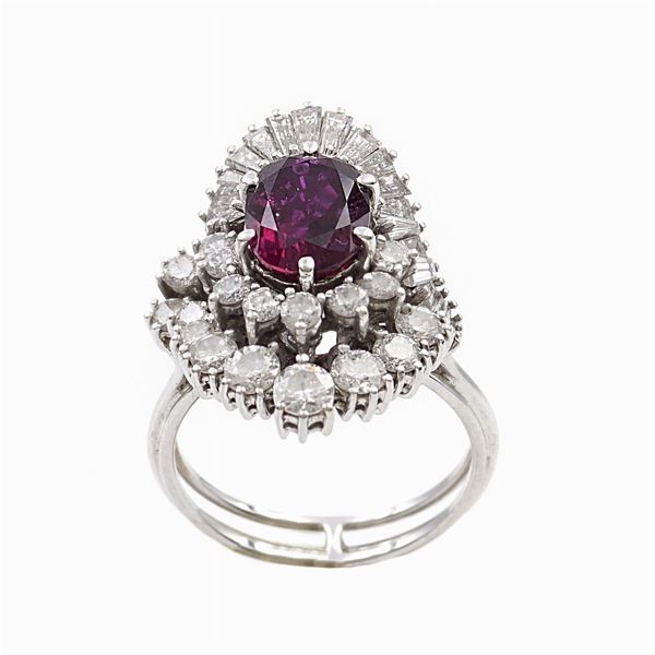 oval cut sorrounded by brilliant and tapered cut diamonds ct 2,80 ca, color F/G - clarity IF/VS.