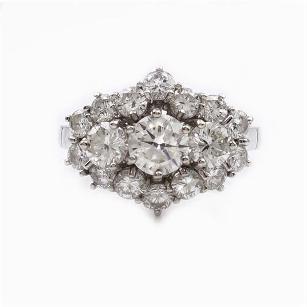 brilliant cut ct 1,10 ca, H color - IF/VVS clarity surrounded by other brilliant cut diamonds ct 1,20 ca H/I color - IF/VS clarity, size 13 with adjustable spring