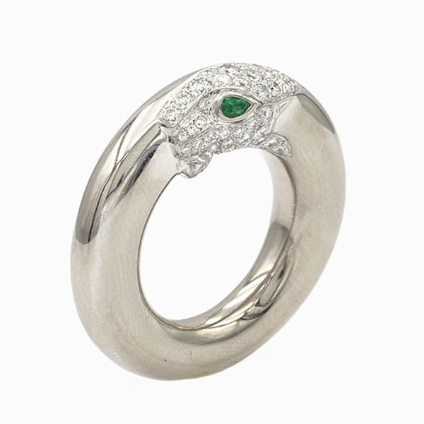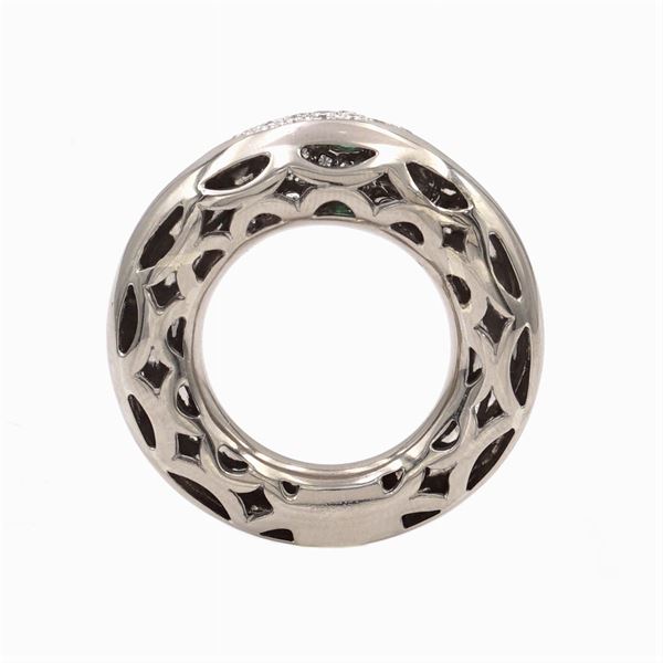white gold panthere pendant with brillant cut diamons ct 0,70 ca. and green tsavotire, signed and numbered on the reverse n.634317, peso 13 gr.