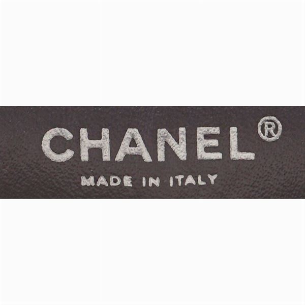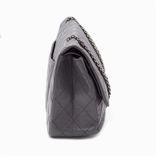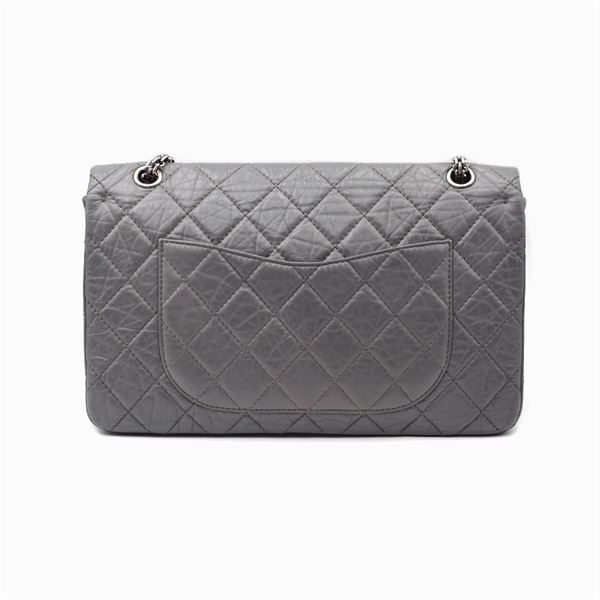 shoulder bag in grey color calf leather, double flap closure, ruthenium hardware, double metal shoulder strap chains, good conditions, 31,5x20x10 cm.