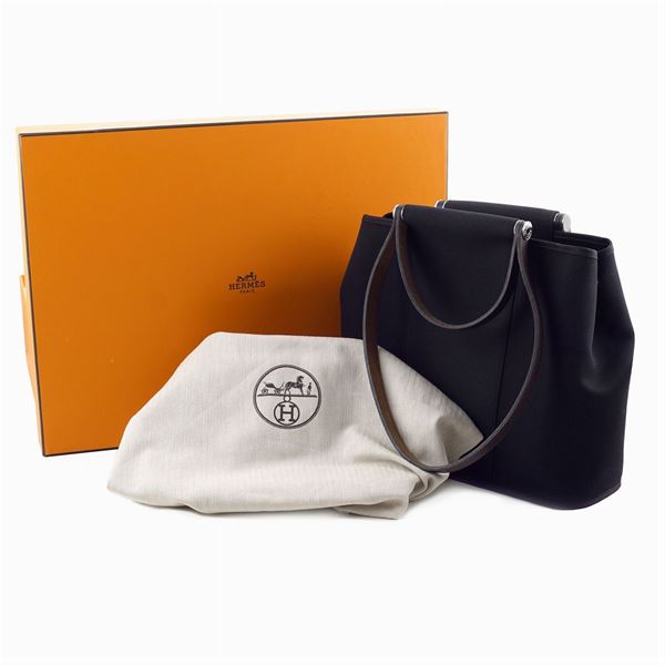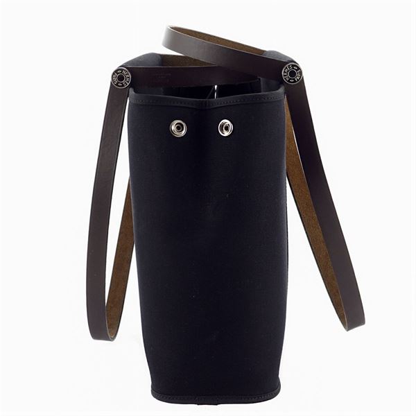 made with black canvas and hide handles and cross body, metal finishes, inside zipped pocket, completed by the original box, good condition, 28x30x12 cm.