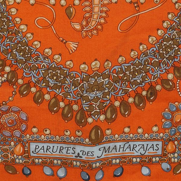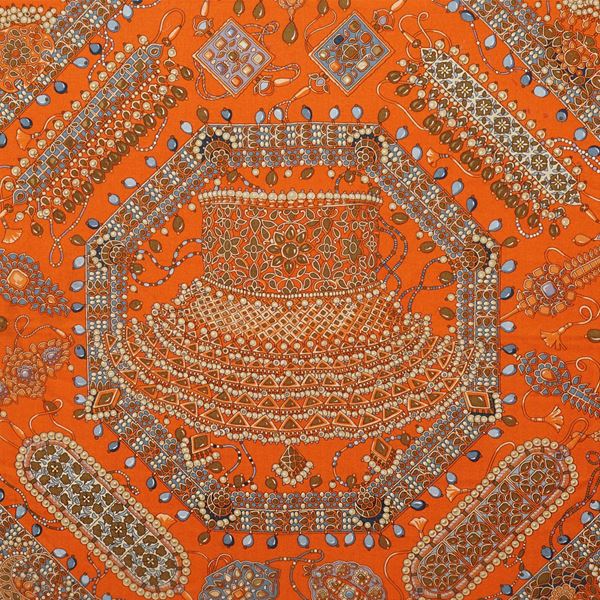 made in silk and cachemire, in the shades of light, ivory and red on orange background, signed "C. Baschet"