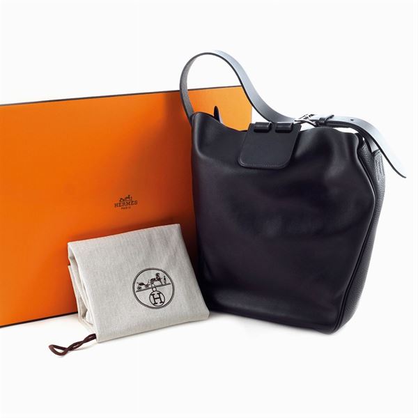 bag made with Swift calf and Clèmence taurillon, metallic finishes placques with silver and palladio, handle regolable, very good condition.