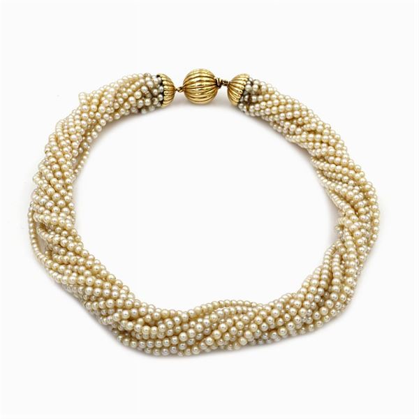 reunited by a 18 kt gold spherical clasp, lenght 42 cm., peso 107 gr.