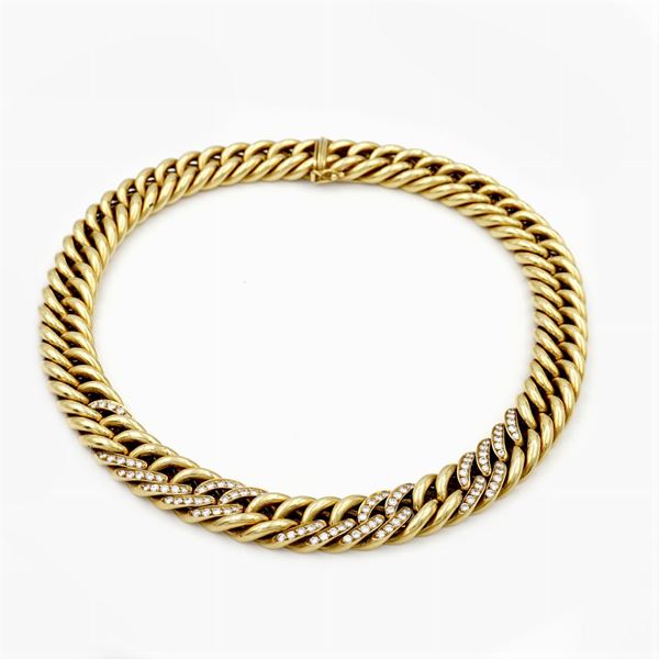groumette link, embellished by diamonds brilian cut ct 1,80 ca., signed on the closure, lenght 39 cm., peso 248 gr.