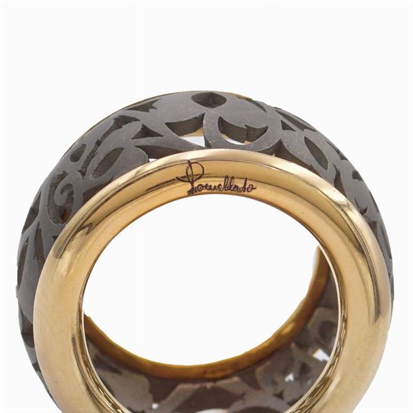 made in 18kt rose gold and titanium, signed on the stem, size 12. Complete with box, peso 8,1 gr.