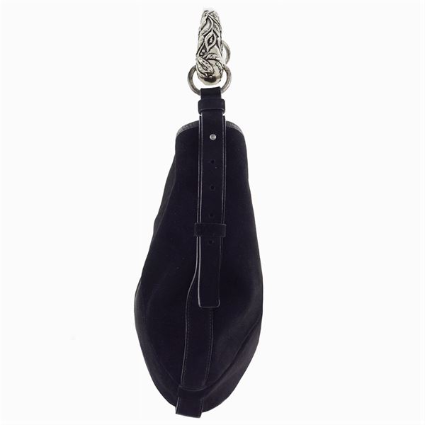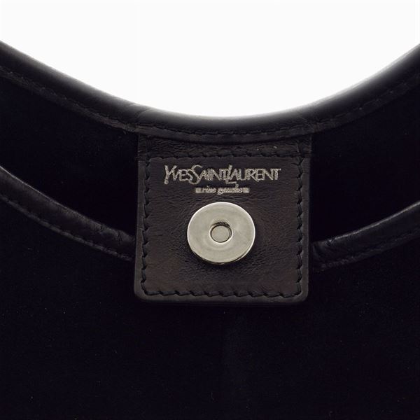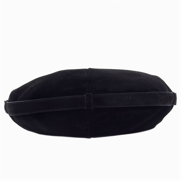 bag made in black suede and leather, silver metal handle, zipped inside pocket, good condition. Completed by the original box, 37x23x4 cm.