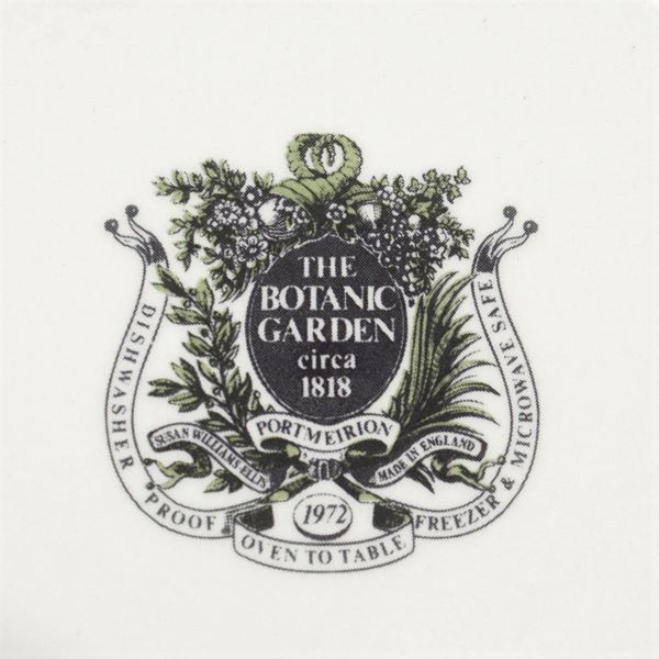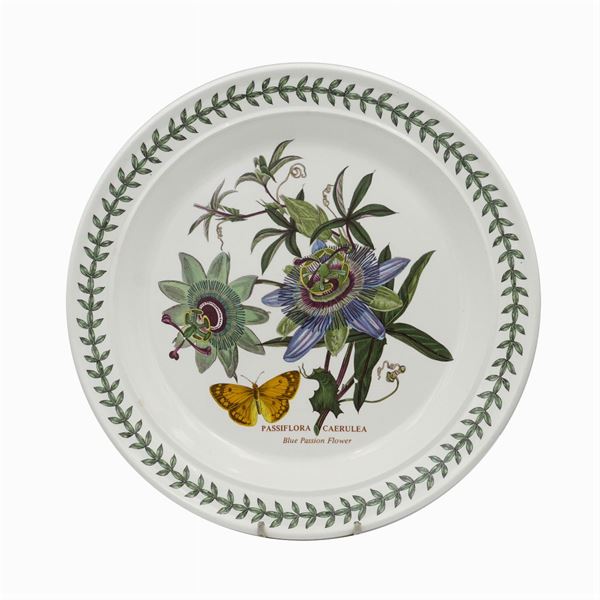Composed of: a soup tureen with ladle, 20 flat plates, 20 soup plates, 17 fruit plates, 2 shell plates, 6 oval serving plates of different sizes, 3 salad bowls, 2 dessert dishes,1 hors d'oeuvre plate,1 jug, 1 pepper box, a cheese bowl, a coffee pot, 2 fish plates, 12 coffee cups with saucer, 4 oval casserole plates, a rectangular casserole plate, 2 spaghetti bowls, 2 raviere, 3 bowls, 1 butter dish, 11 cups