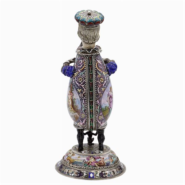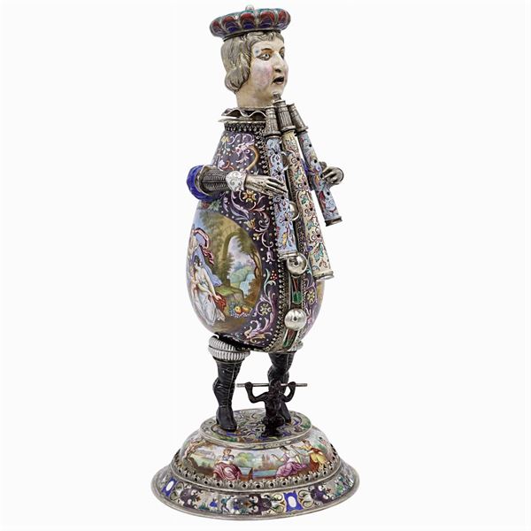 mark Herman Bohm, musician shape, decorated with mythological scenes and vegetal and floral patterns, resting on an oval base, h. 27 cm., peso 841 gr.