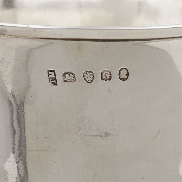 mark Thomas Meriton, plain circular body, turned wooden handle, h. 11 cm., peso lordo 277 gr.