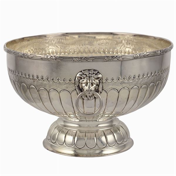 fluted bosy, chiselled profile with vegetal motives, lion head shaped handles, 19,5x31 cm.